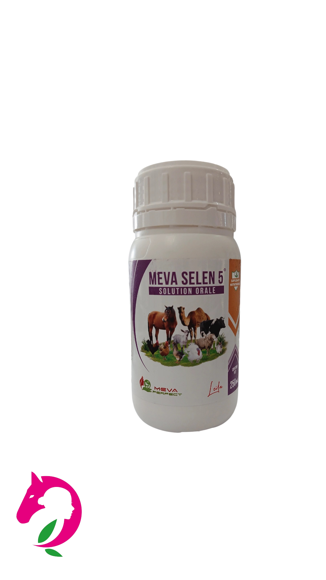 MEVA SELEN 5 est un complément nutritionnel vétérinaire sous forme de solution orale, spécialement formulé pour couvrir les besoins en sélénium chez les animaux d’élevage (bovins, ovins, caprins, volailles, camélidés).